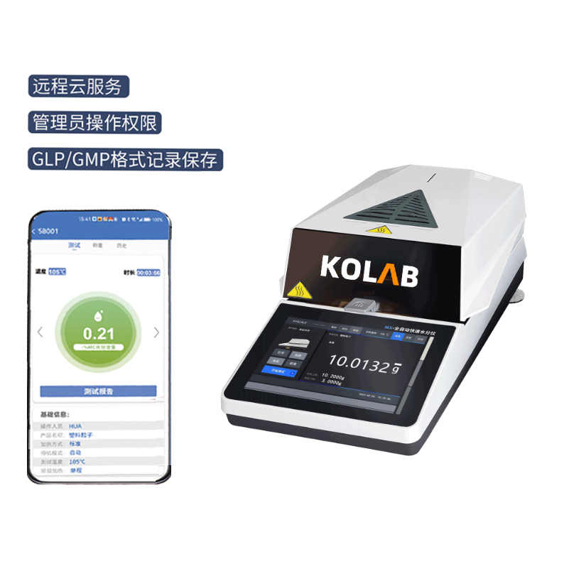 KX-F系列智能水分測定儀集成了KOLAB 科西水分測定成熟技術,使整個分析系統更加**善。采用高效率的烘干加熱器-高品質環狀鹵素燈進行加熱,對樣品進行快速、均勻的加熱;儀器設計智能化、簡單化,實現了用戶*鍵式測量功能,*需**業知識。因*同行業對水分有著*同的定義,為滿足用戶的需求,KX-F系列內置多種水分顯示方式,包括但*限于含水率、固含量、回潮率、木材含水率等多種模式,并針對*同行業的*同樣品,儀器預留了多種用戶自定義測定方法,用戶可根據實際需求設置測量模式,自定義程序自動儲存,調取方便、快速,滿足行業多種樣品的測定需求。該系列水分測定儀全金屬機身、支持高溫檢測,升溫快、加熱均勻、使用簡單、壽命長等特點。